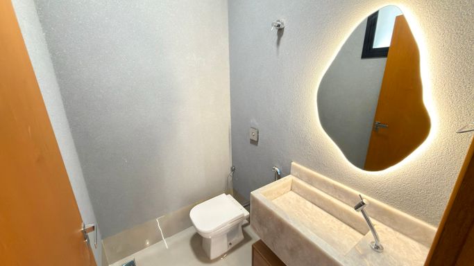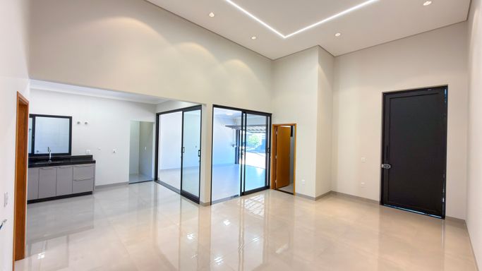 A integração entre sala de estar, jantar e cozinha gourmet cria um ambiente moderno, perfeito para receber amigos e família.