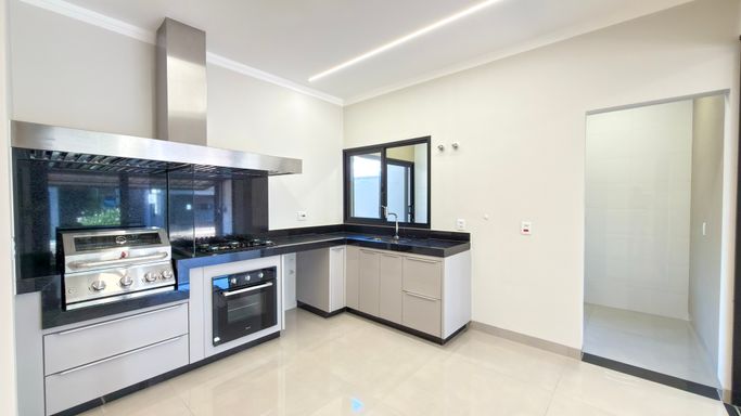 ✔ Churrasqueira a gás, cooktop, coifa e forno
